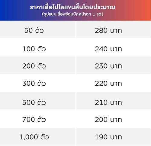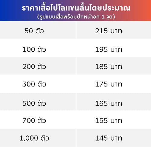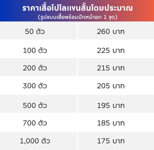 เราจึงประมาณราคาเสื้อโปโลมาให้ลูกค้าดู เพื่อง่ายต่อการตัดสินใจ ดูราคาตามชนิดเนื้อผ้าได้เลย